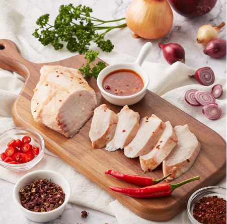 ●國產雞胸採用真空低溫烹調,達到殺菌及熟成的目的